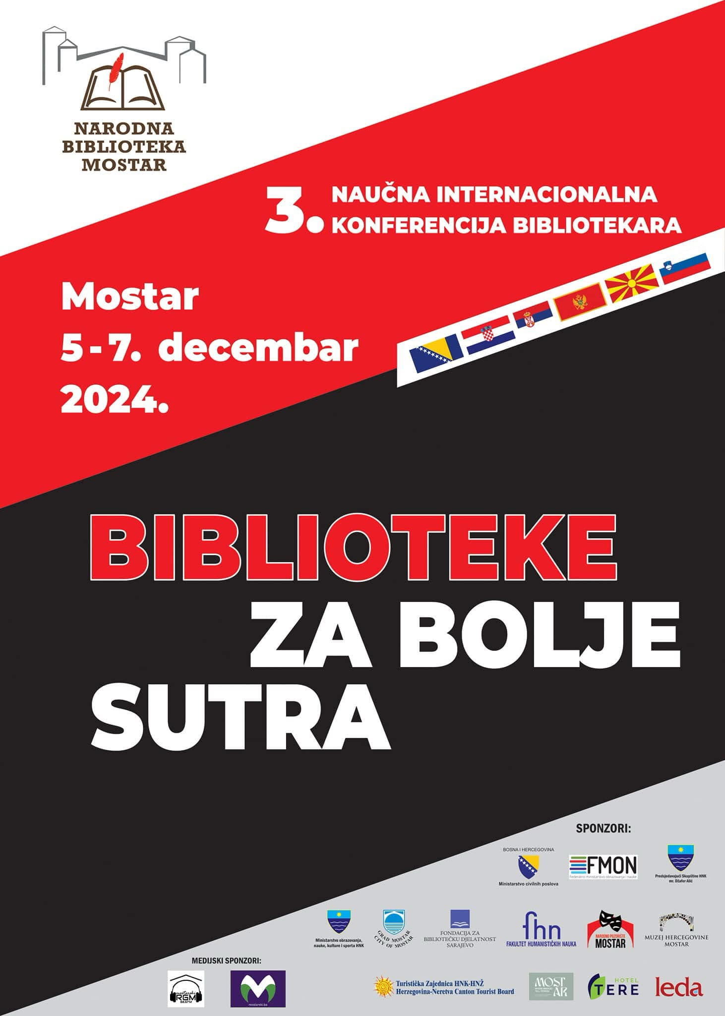 Treća naučna konferencija bibliotekara pod nazivom Biblioteke za bolje sutra održana je u Mostaru od 5. do 7.12.2024. godine. Kolegica Renata Kapo iz Službe za stručnu obradu i nabavku bibliotečke građe imala je izlaganje na temu “Metapodatak zelene biblioteke”.